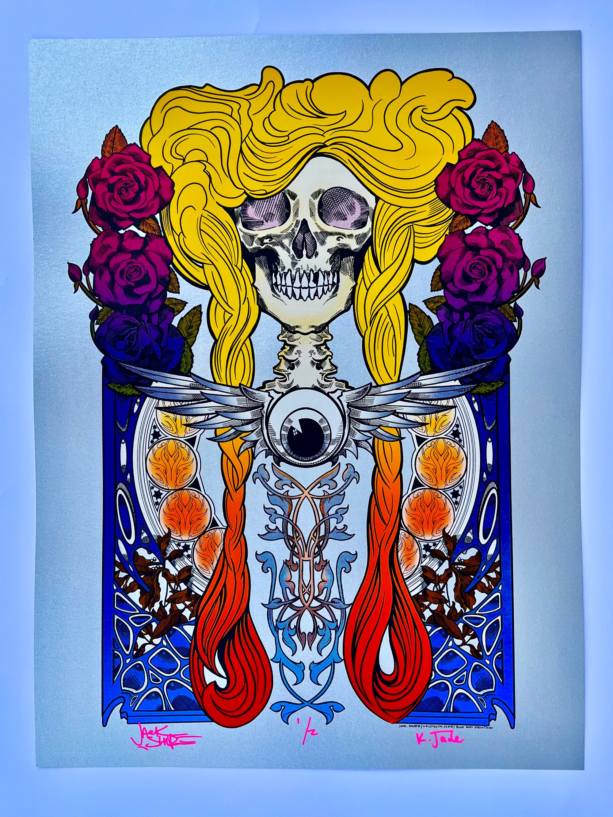 Printed using vintage fountain screen technique resulting in every print being unique.