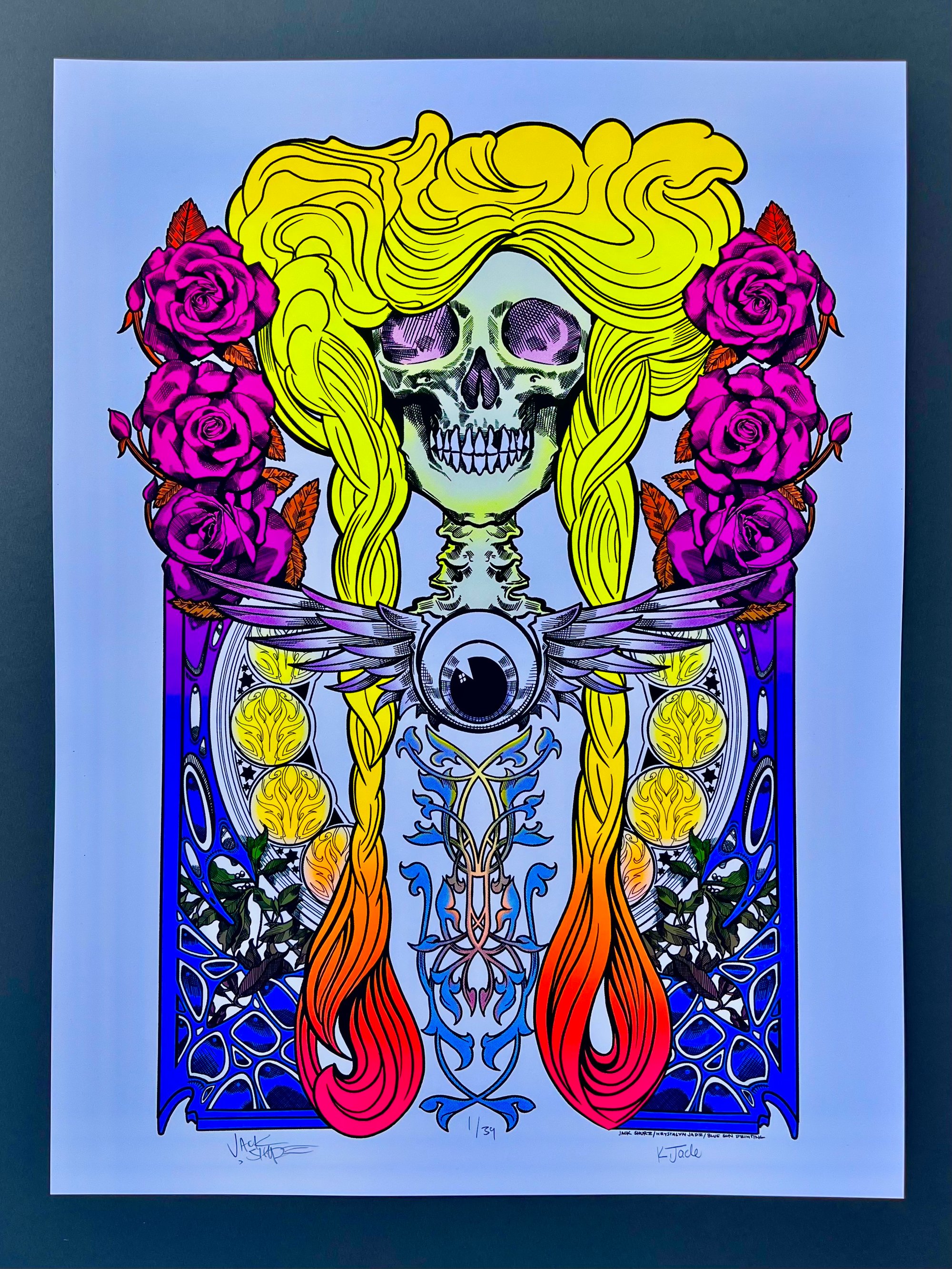 Printed using vintage fountain screen technique resulting in every print being unique.